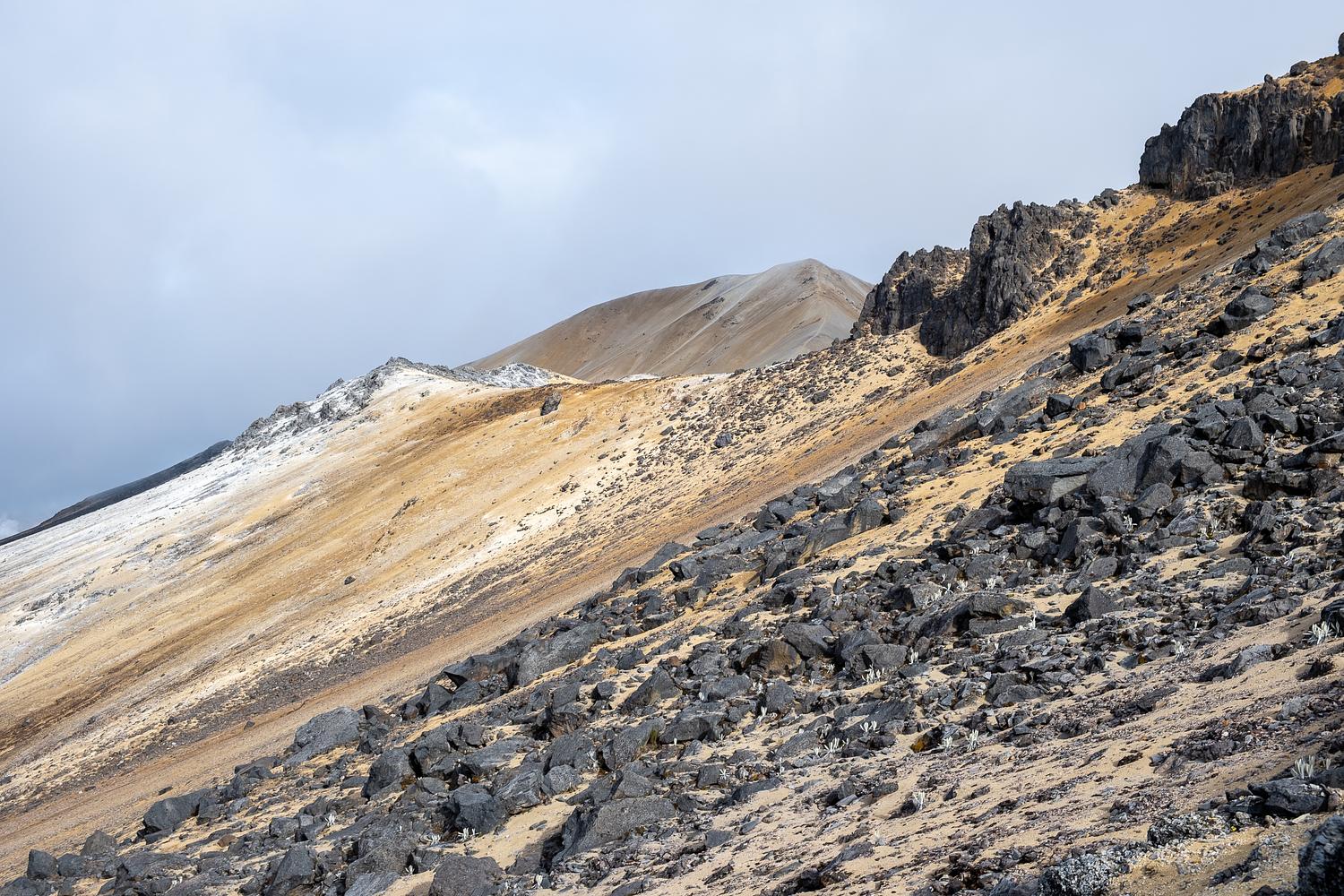 A paramillo is an extinct glacier. Paramillo del Quindio lies in the Nevados Natural Park in Colombia. This photo was taken during the north ridge traverse, not a common route to approach this mountain.